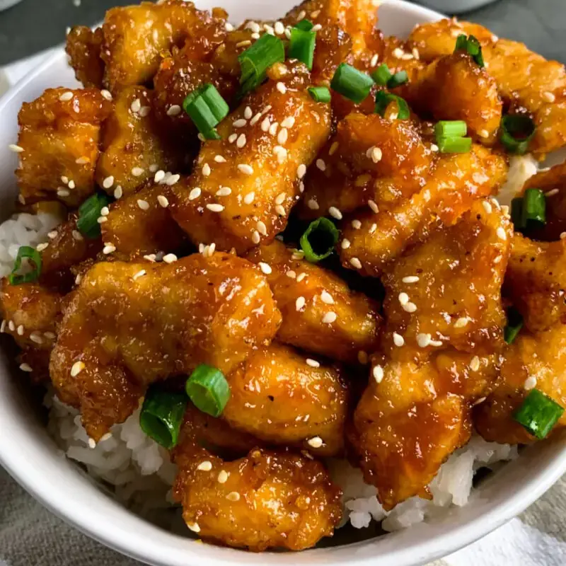The foundation of this dish begins with boneless, skinless chicken breasts cut into bite-sized pieces. Each piece is seasoned with salt and black pepper before being coated in cornstarch and dipped into beaten eggs. This process creates a light outer layer that becomes golden and slightly crisp when cooked, forming the base for the dish’s signature texture.