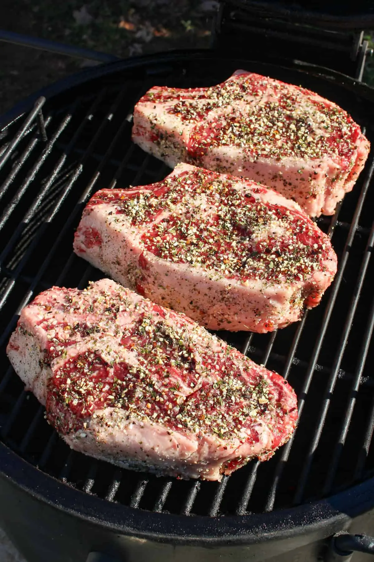 Step 2 – Temper the Steak Take the ribeye out of the fridge 30 minutes before cooking. Pat bone-dry with paper towels.