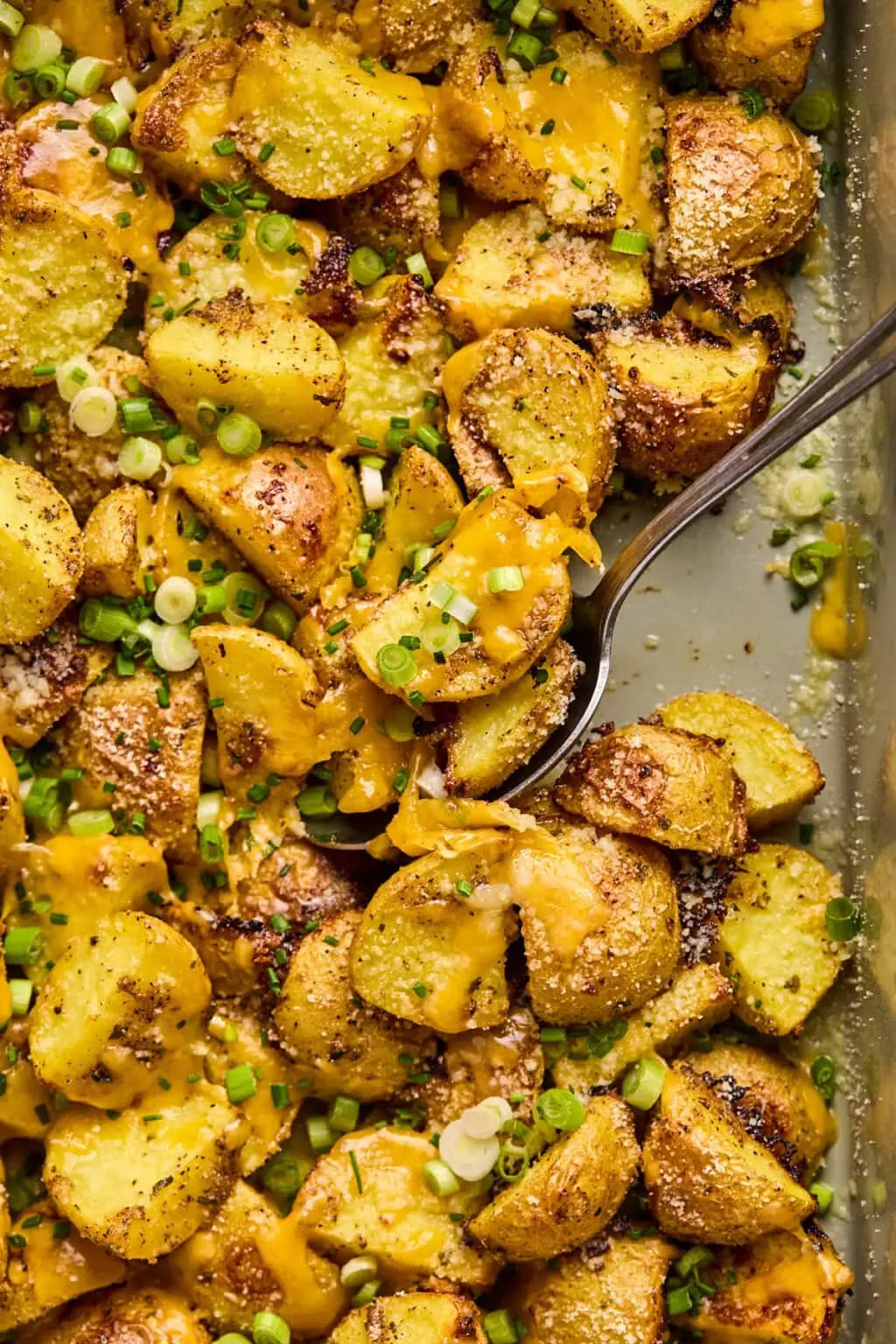 Cheesy Ranch Oven Roasted Potatoes are crispy on the outside, fluffy on the inside, and coated in bold ranch seasoning with melted, golden