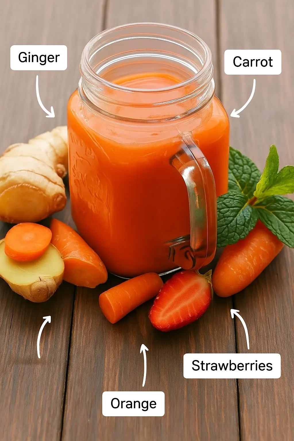 π₯π Ginger, Carrot, Orange, and Strawberry Juice