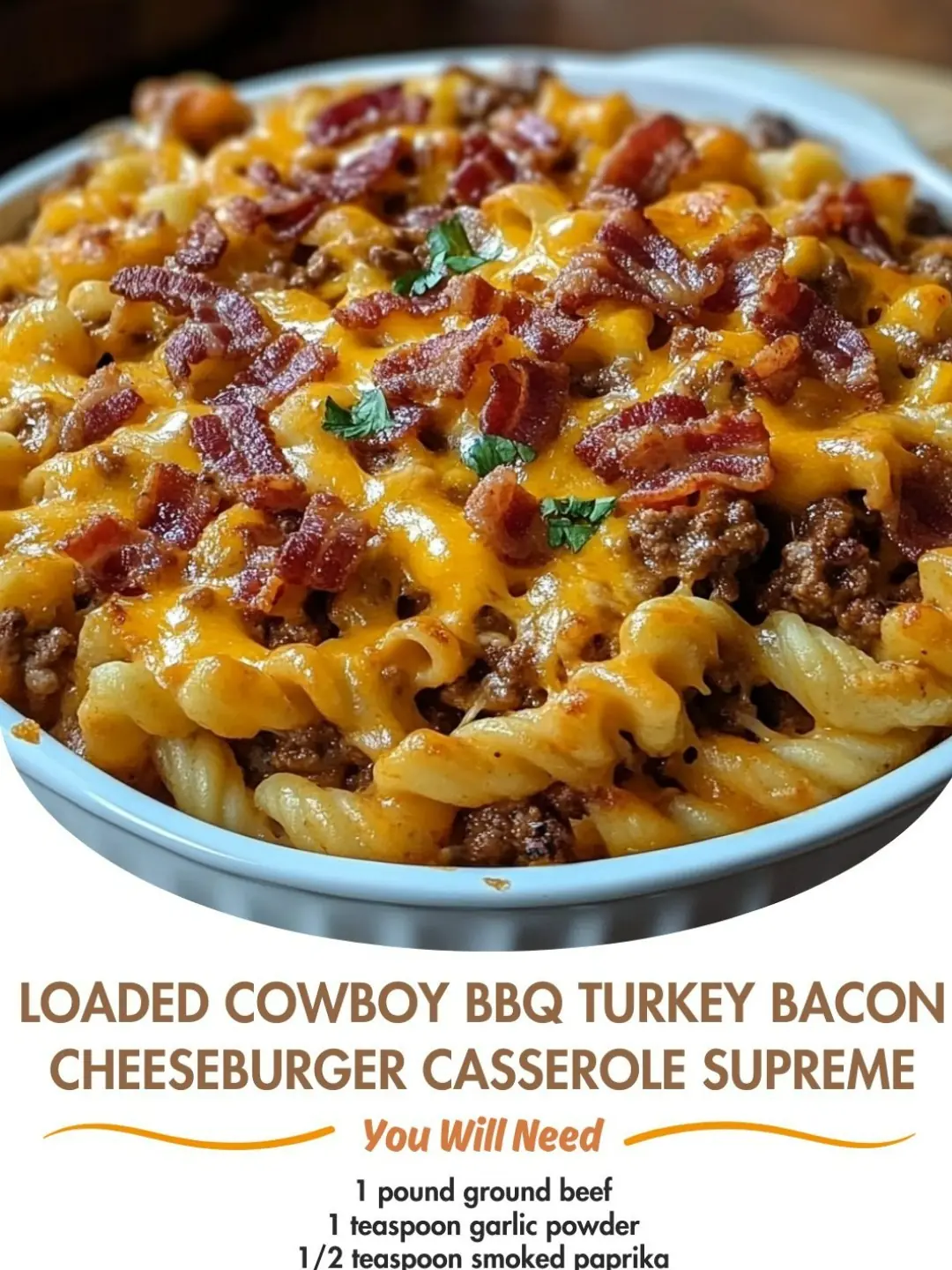 This Loaded Cowboy BBQ Turkey Bacon Cheeseburger Casserole Supreme is a flavor-packed dish that’ll have everyone asking for seconds. It’s the perfect combination of savory, cheesy, and satisfying! ππ₯β¨